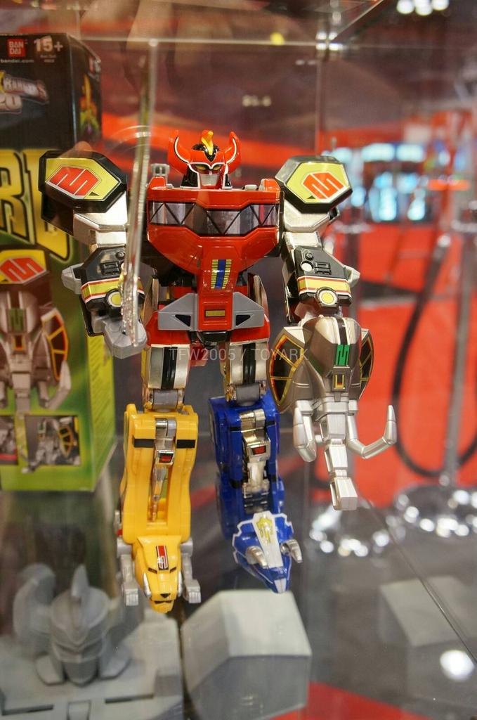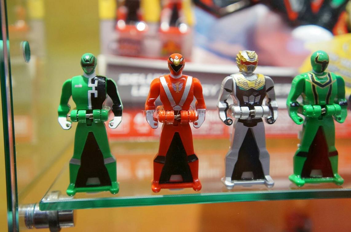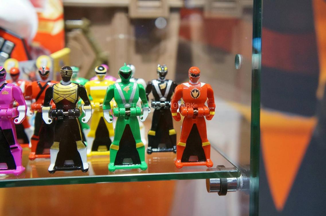 – Several DX megazord components are also on display including US versions of Gaolion and Patstriker! It would also appear that Bandai is creating more vehciles which homage other Ranger seasons to upgrade the legendary megazord. Notice the Super Megaforce Red riding a Red Zeo Battlezord vehicle?