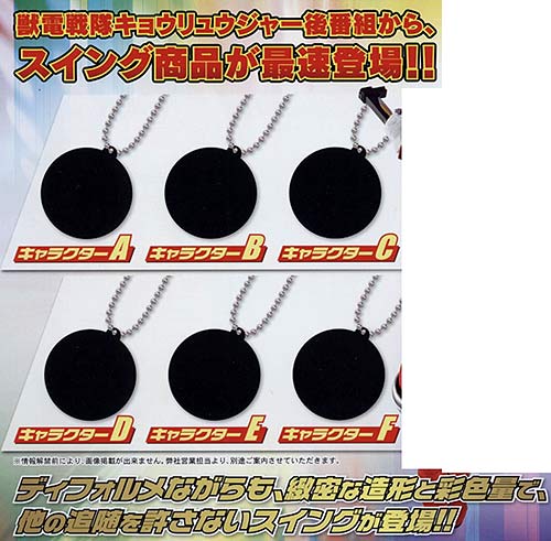 Back in September we brought the news to you that Toei had officially filed it’s trademark for the 2014 sentai Resha Sentai Tokkyuger![/URL] Though no major updates or spoilers have appeared yet, a sales page is floating around currently which shows a series of blacked out collectible keychains from the series. It would seem that the 6 keychains will represent 5 Tokyugers and their primary robo.