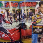 According to The Tokusatsu Network, Kamen Rider Drive’s true name is Shinnosuke Tomari. He is described as a car fanatic and police officer in his off-hours. The Drive transformation works by changing a Shift Car into Lever Mode and then inserting it to the Shift Bracelet. Perhaps the most surprising news from the scans thus far is the Drive Driver TALKS to Shinnosuke during combat & offers him helpful advice!